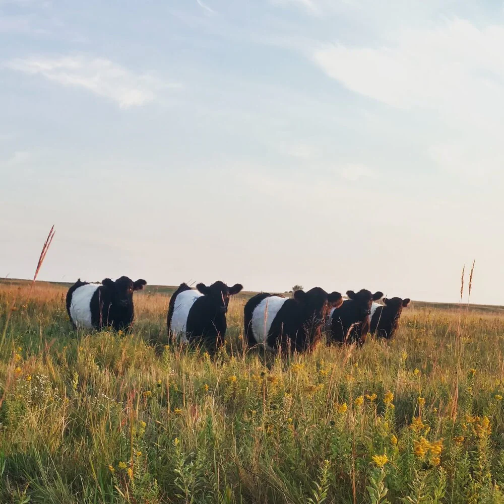 Answer: Our heritage breed cows are Belted Galloways, a Scottish breed. The white belts around their middles make them very distinctive (and adorable — we call them “Oreo cows” for their cream-filled look). While most are black, they come in shades of red, dun, and rarely white as well.